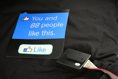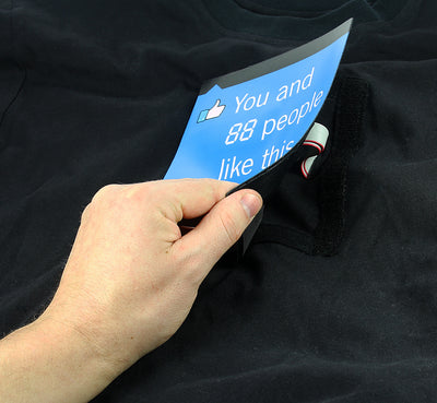 The Like button and the display are realized by a soft plastic attachment, which is attached to the shirt with Velcro. The attachment is powered by a battery box that can be inserted into a pocket sewn into the inside of the shirt. The sequence is as follows: The counter lights up all the time as soon as the shirt has been switched on. After pressing the "Like Button", the "You and" also lights up and after approx. 2 seconds the counter increases by one (see .gif animation). This process is similar to what happens on Facebook when you click on "Like".