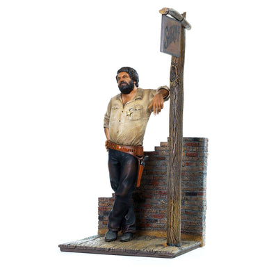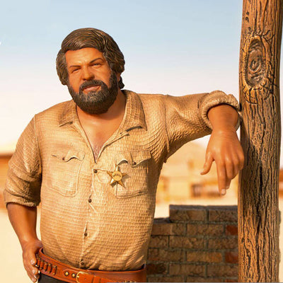 The statue, developed in collaboration with Pedersoli, shows Bud Spencer on a matching western diorama and is limited to 1500 pieces worldwide worldwide. In addition to a certificate of authenticity, it also comes with a medal of authenticity so you can prove how great your latest piece of jewelry really is. :) Of course, it looks best alongside its movie partner Terence Hill.