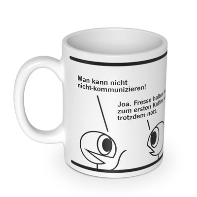 This mug was created in collaboration with Nadja Hermann, who cleverly addresses everyday and social issues in the erzaehlmirnix webcomic and shares her thoughts with us in longer text contributions. In addition to this mug, of course, we also have other erzaehlmirnix merchandise in our shop! :)