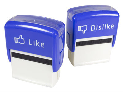 The Like & Dislike Stamps are made of plastic and have an integrated ink pad, so you just have to press them down and a Like or Dislike stamp impression will appear on the paper. This protects against ink-smudged fingers :)