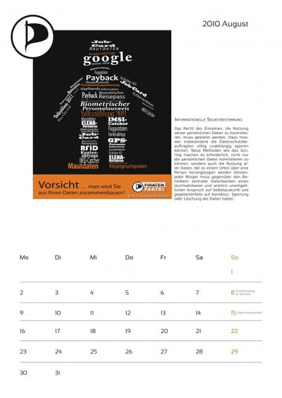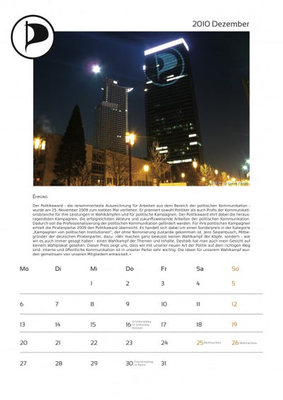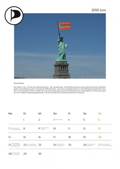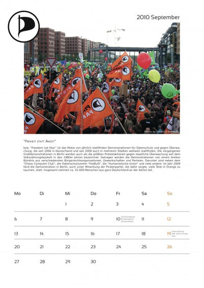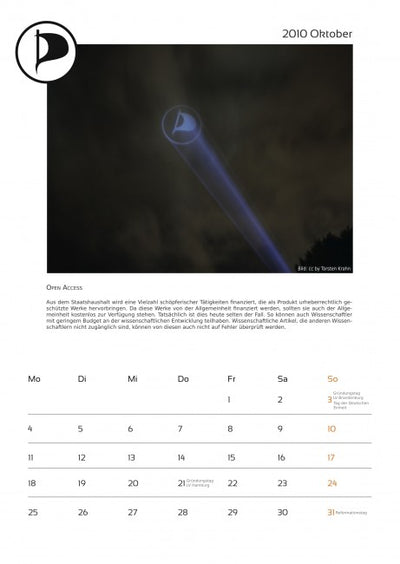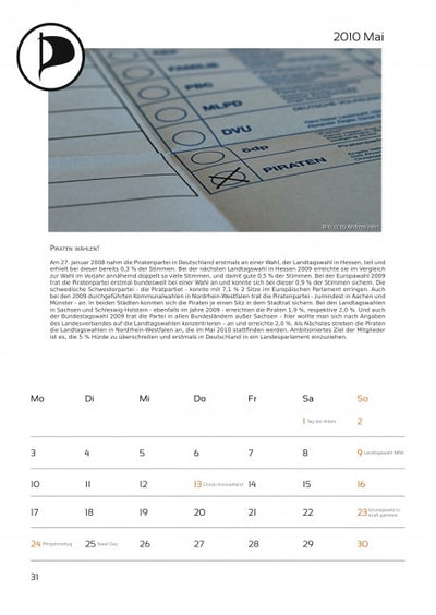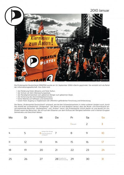 DIN A3 calendar with 13 colored pages from the Pirate Calendar 2010 Competition.