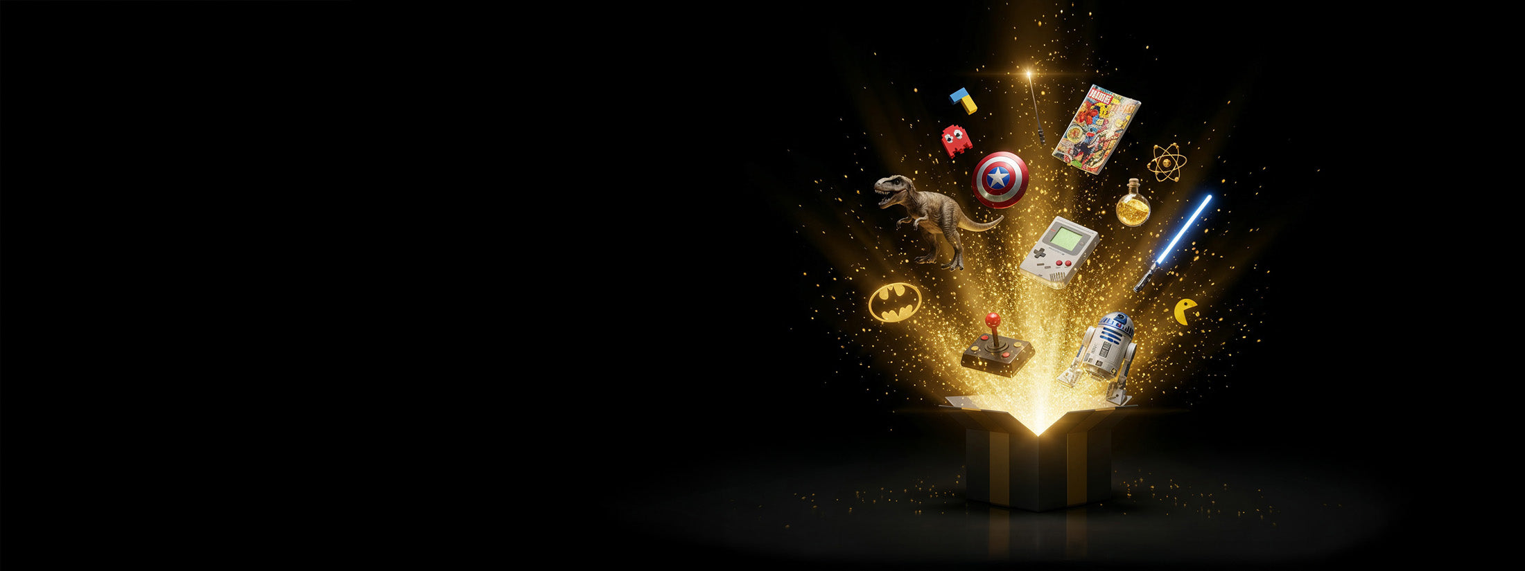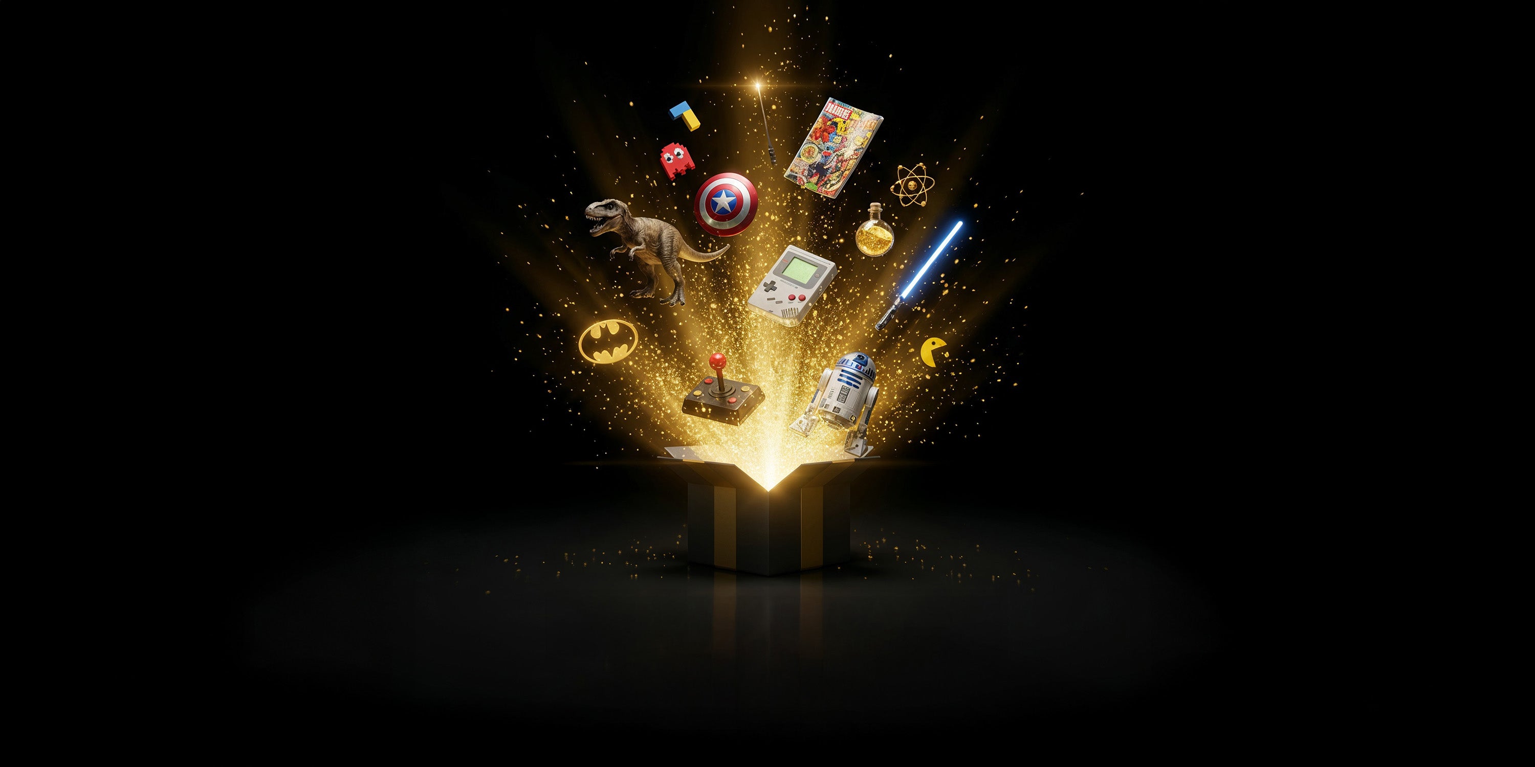 All three surprise boxes contain new items from our entire store or from previous years. Lootboxes. It can be anything. Figures, gadgets, household items, merchandise, cushions, comics, everything. Of course, we don't want to reveal exactly what these items are.