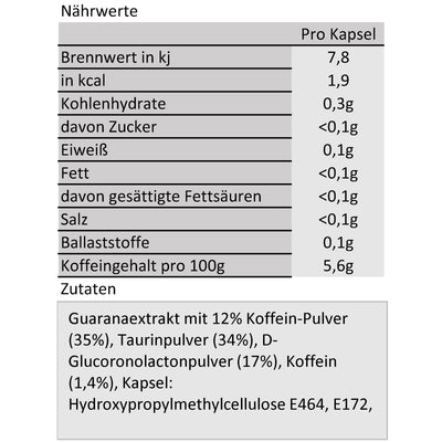 Las cápsulas se pueden tomar directamente con un vaso de agua. Si quieres, también puedes abrirlas y disolver el contenido directamente en agua. Una cápsula tiene aproximadamente el contenido de cafeína de una bebida energética común. No debes tomar más de tres cápsulas al día; si estás tan agotado, te recomendamos una pequeña siesta. ;) También se recomienda precaución si ya consumes grandes cantidades de café (ver foto). Aparte de eso, no hay nada que impida una noche de juego o un día de trabajo con resaca. :)