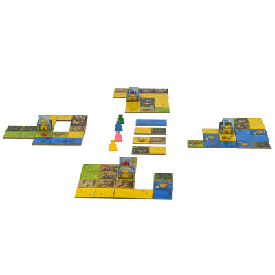 Bei diesem Spiel musst du als mittelalterlicher Herrscher dein Königreich (englisch: Kingdom) vergrößern, indem du „Landschaftsplättchen“ aneinander legst. Nur Plättchen mit dem gleichen Muster können aneinander gelegt werden, wie beim Domino. So ergibt sich der Name Kingdomino, offizielles Spiel des Jahres 2017!