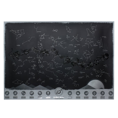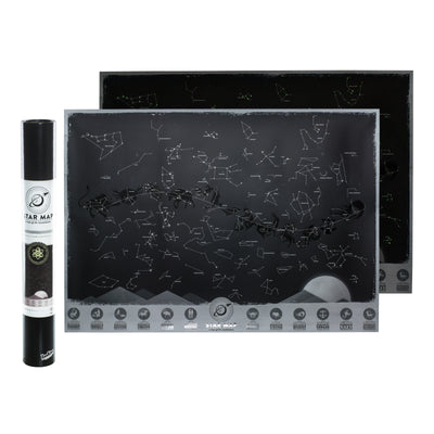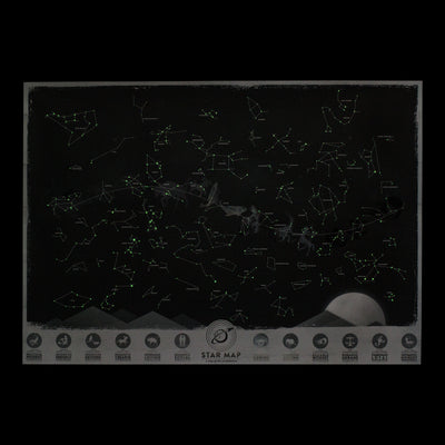 Es práctico que se impriman las constelaciones de estrellas en el mapa con color fluorescente, para que aún pueda comparar el cielo con la tarjeta incluso en una oscuridad muy profunda. Además, por supuesto, esto también ofrece un gran efecto si cuelga la tarjeta en su pared. ¡Ajuste, Star Traveler!