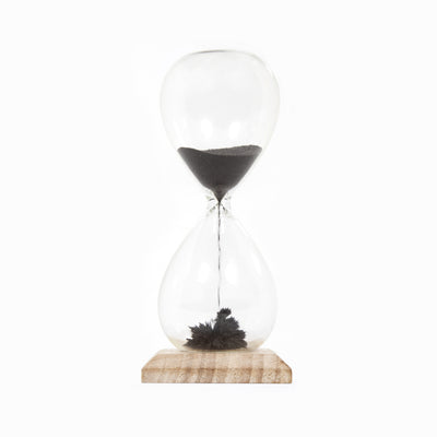 En la última categoría, nuestro reloj de arena magnética, que proporciona esta tecnología atemporal (badum -ss ...) mediante el uso de virutas de hierro y un imán en la base del reloj con nuevas propiedades fascinantes. Simplemente tome el matraz de vidrio en el aire, gírelo y póngalo en el imán en la base de madera. Las finas virutas de hierro caen a través de la abertura durante un minuto y forman patrones fascinantes en la parte inferior del reloj de arena. Tan pronto como retire el cuerpo de vidrio de la base, los chips pierden su carga magnética nuevamente. Los posibles usos son casi infinitos: puede medir cuánto tiempo lleva su computadora para abrir el navegador, puede adherirse al momento perfecto para tirar de su té, etc.