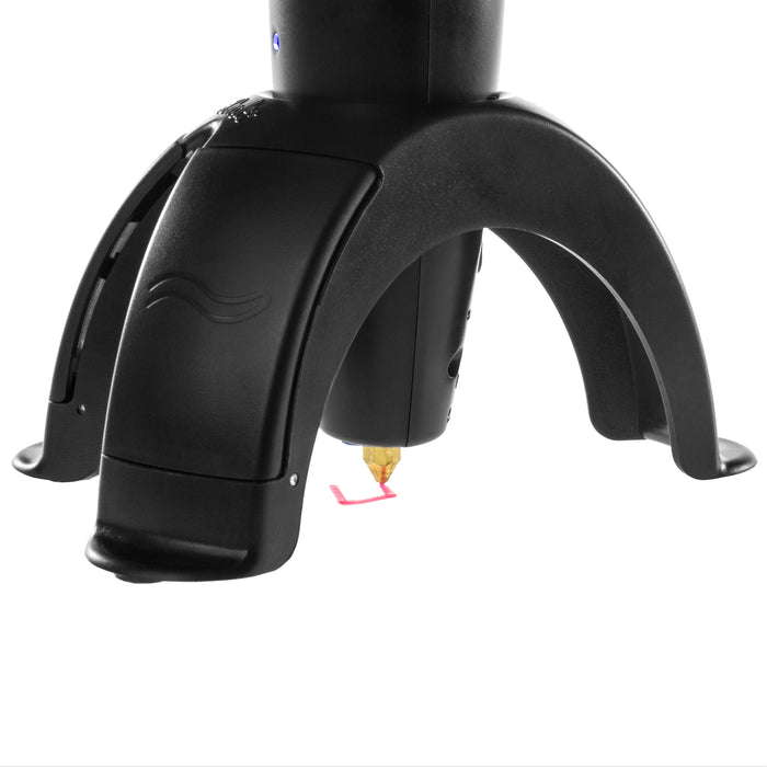 Zum einen dient der Standfuß als ganz normaler Ständer zum Aufbewahren. Du musst Deinen 3Doodler also nicht mehr unordentlich herumrollen lassen. ;)