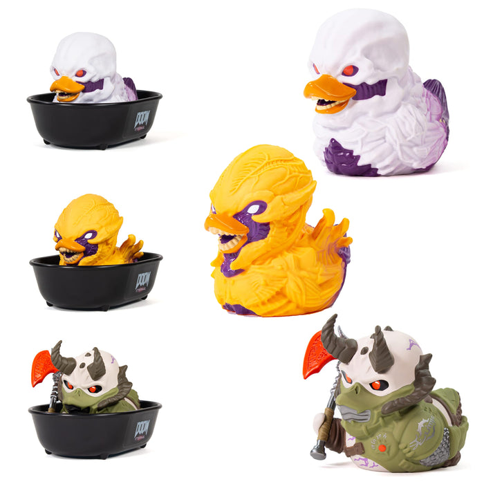 Doch lass dich nicht von der niedlichen Entchen-Optik täuschen: Die DOOM TUBBZ Cosplay-Badeenten schlüpfen in die Charaktere deiner Gegner aus DOOM Eternal. Und sie haben sich mit ihren Kostümen viel Mühe gegeben, denn von den Waffen bis zu den spitzen Zähnen ähneln sie dem Imp bis ins Detail.