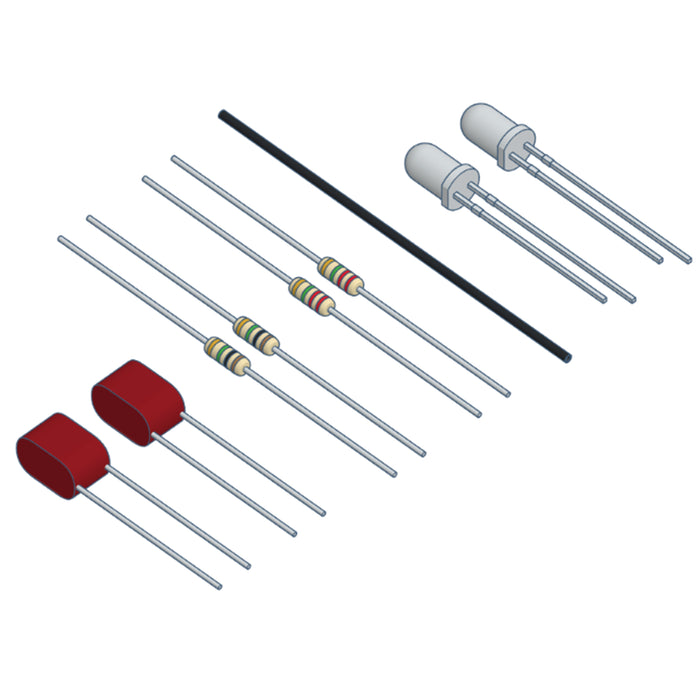 • El conjunto de condensadores añade una "memoria a corto plazo" al robot para que pueda recordar cosas y aprender uno de cuatro comportamientos (Tómatelo siempre con calma, Un robot borracho, Asustado y confiado, Un perro salchicha tambaleante). Además de los condensadores, se incluyen dos LED.