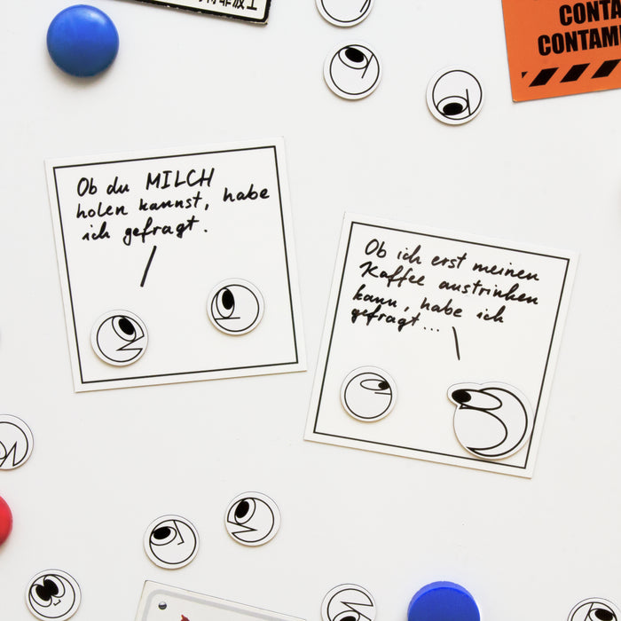 Estos imanes de nevera se crearon en colaboración con Nadja Hermann, que aborda con ingenio los problemas cotidianos y sociales en el webcómic Erzaehlmirnix y comparte sus pensamientos con nosotros en contribuciones de texto más largas. Además de estos imanes, por supuesto también puedes encontrar otros artículos de Erzaehlmirnix en nuestra tienda.