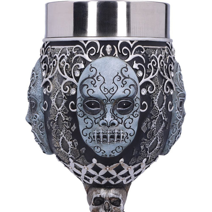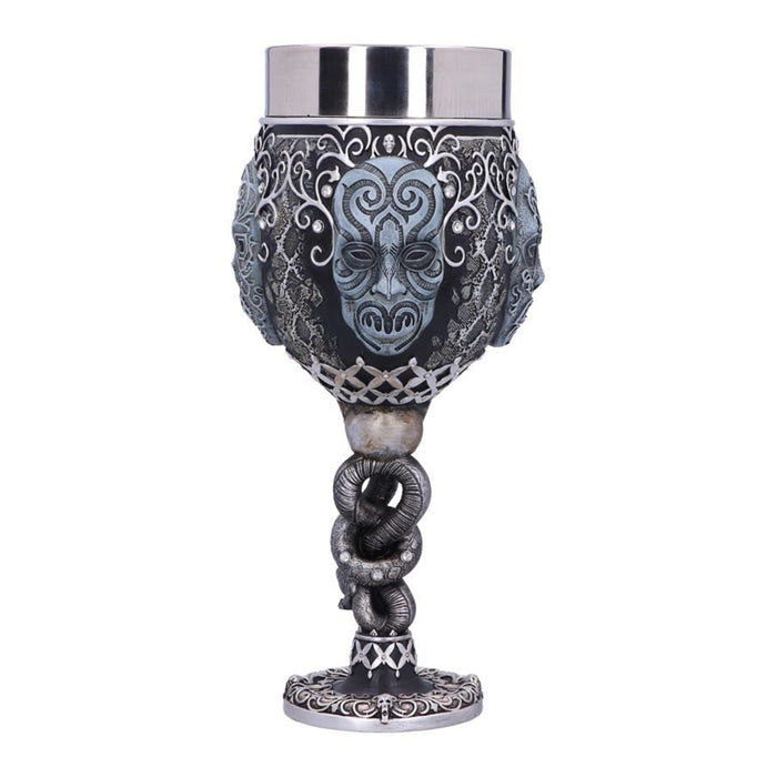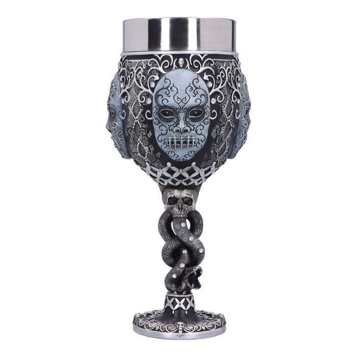 Tras el regreso de Voldemort, sus seguidores vuelven a reunirse en secreto para planear la caída de Harry y el sometimiento de los mundos mágico y muggle. Pero mantener los nervios en presencia del Señor Oscuro y su serpiente Nagini no es precisamente fácil para la mayoría de los mortífagos. Lo que les ayuda son las bebidas adecuadas, de los vasos para beber de los Mortífagos de Harry Potter a juego.
