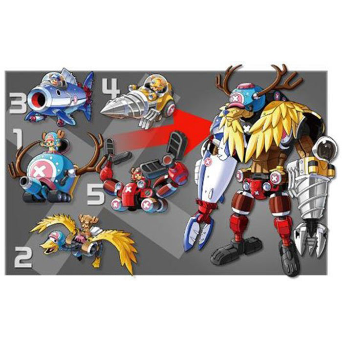 Als Arzt muss man so schnell wie möglich an verschiedenen Orten sein, um Wunden zu pflegen, Gliedmaßen zu verbinden und natürlich auch um Bösewichten aufs Maul zu hauen. Na gut, im Medizinstudium lernt man letzteres vielleicht nicht unbedingt – aber als Mitglied der Strohhüte schon! Und der kleine Tony Chopper schlägt sich (wortwörtlich) ganz hervorragend. Damit er all diese wichtigen Tätigkeiten weiterhin erfüllen kann, stehen ihm diese Vehikel für Land, Luft und Wasser bereit. Du musst sie nur noch zusammenbauen!