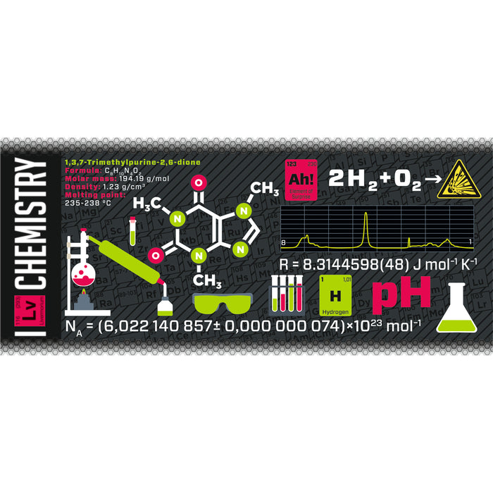 • Muestra elementos apasionantes de la química como la ecuación del oxihidrógeno y todo lo que necesitas saber sobre la cafeína