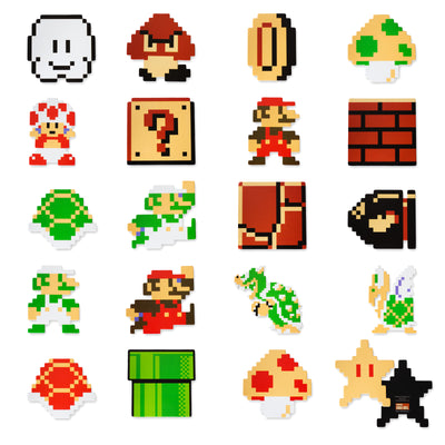 • Set de 20 sous-verres résistants à l'eau ;- ; Reproduisent des personnages et des objets de Super Mario Bros ;- ; Produit sous licence officielle