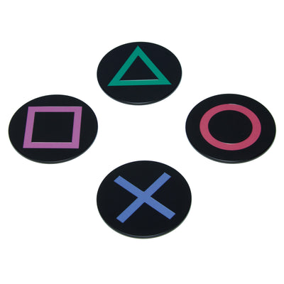 • Set de quatre sous-verres en métal représentant les boutons de la manette PlayStation