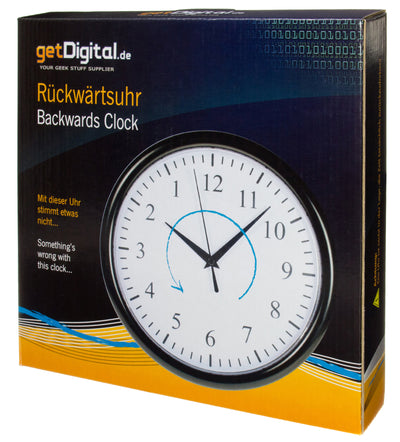 Quiconque voit l'horloge inversée dans ton appartement ne remarquera d'abord rien de spécial. Il a devant lui une horloge de cuisine tout à fait normale et simple : cadran blanc, chiffres noirs, aiguilles noires. Mais quelque chose ne va pas... Car cette horloge tourne à l'envers ! Non seulement les chiffres sont disposés dans le sens inverse des aiguilles d'une montre, mais les aiguilles tournent également vers la gauche !