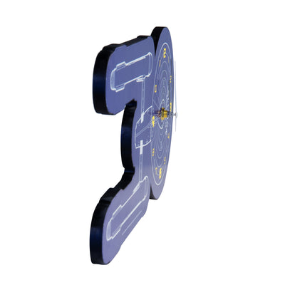 L'horloge se fixe facilement à un mur ou à d'autres surfaces lisses en utilisant l'une des différentes options de montage (vis ou clous et pile AA nécessaires). Comme le chronomètre de l'Enterprise, tu peux aussi utiliser l'horloge pour reconstruire combien de temps il t'a vraiment fallu pour faire ton "powernap de 5 minutes".