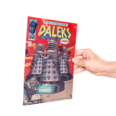 Il Immagini di Doctor Who Dalek 3D portano un paio di avversari sulla tua parete come un'affascinante opera d'arte in 3D. La stampa lenticolare (nota anche come "wiggle image") dà l'impressione che le immagini emergano tridimensionalmente dal poster e prendano vita.