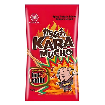 Die Marke Koikeya ist für ihre einzigartigen und kräftig gewürzten Chips bekannt. Mit den Kara Mucho Hot Chilli Potato Sticks kannst du dir das typische japanische Geschmackserlebnis ganz einfach nach Hause holen – intensiv, scharf und unwiderstehlich.