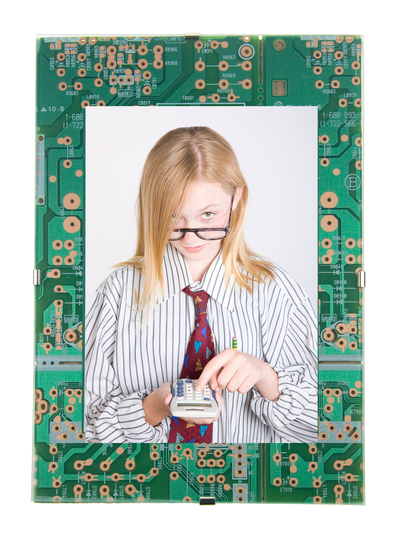 La cornice PCB salverà la tua immagine da geek! Realizzata con veri circuiti di computer, è innanzitutto un prodotto riciclato ed ecologico. Inoltre, i circuiti stampati verdi e dorati hanno un aspetto particolarmente elegante.