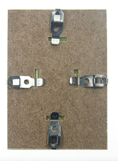 La cornice per circuiti stampati è composta da una lastra di vetro e da un pannello posteriore in cartoncino. In mezzo c'è il circuito stampato che misura 10,5 x 15 cm. Funge da passe-partout, per così dire, e si rivela particolarmente utile con una foto di 7x10 cm. Il tutto è fissato con quattro clip metalliche. Si prega di notare che l'aspetto esatto dei circuiti stampati può variare.
