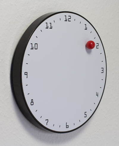 Il design dell'orologio da parete Magnetic Ball è innovativo quanto il meccanismo. Il suo design minimalista e funzionale lo rende un vero e proprio richiamo visivo. Bisogna guardare due volte per rendersi conto di cosa sia la sfera rossa che sostituisce le lancette tradizionali!