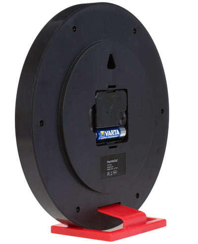 L'orologio da parete Magnetic Ball è dotato di una nicchia sul retro che permette di appenderlo alla parete con un semplice gancio (il gancio non è incluso). Nella confezione è incluso anche un supporto rosso dello stesso colore della "pallina", in modo che l'orologio da parete Magnetic Ball possa essere posizionato anche su una scrivania o una mensola.