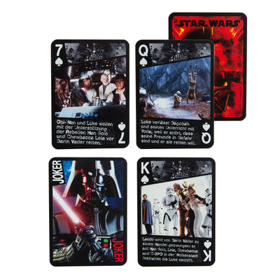 Il Carte da gioco di Star Wars "La storia di Darth Vader raccontano la storia di come il giovane Jedi si trasforma in Darth Vader, combatte contro suo figlio Luke e infine [SPOILER] ritrova la strada del bene sulle 52 carte +3 di una mano di poker con immagini e brevi testi. In pieno stile, le carte da gioco vengono fornite in una scatola che riprende l'iconico elmo di Darth Vader. A proposito: è considerato barare se si usa la Forza quando si gioca a poker? ;)
