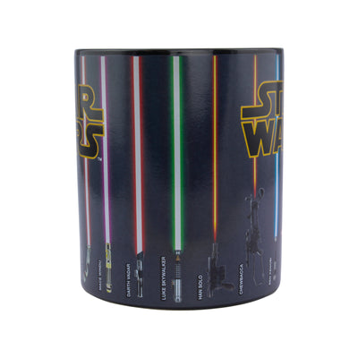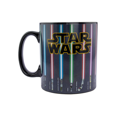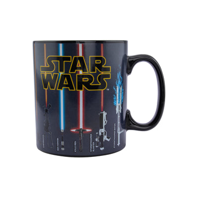 La tazza può contenere fino a 450 ml e ha spazio per tutte le famose spade laser e altre armi dell'universo di Star Wars. Quando è fredda, la tazza rimane scura e le armi sono al sicuro, ma quando la riempi con un liquido caldo, le armi energetiche colorate si illuminano. Che ci sia di mezzo un po' di energia?