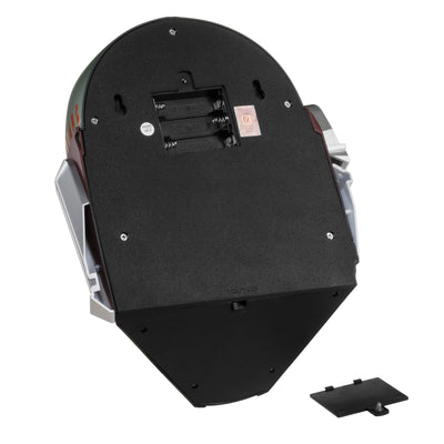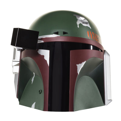 L'elmo di Boba Fett presenta i soliti danni, tra cui una bella ammaccatura sulla fronte. La sua visiera si illumina di rosso, ma la fonte di luce più luminosa è il telemetro, che puoi regolare tu stesso. Il modo migliore per capire la distanza è guardare le foto in alto a sinistra. Il casco è dotato di LED che lo illuminano; sono necessarie solo tre batterie AA aggiuntive. Un aspetto particolarmente positivo è che non ci sono cavi fastidiosi.