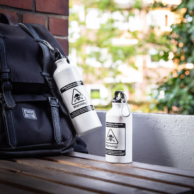 Per questo motivo, l'uso di DHMO è consentito solo nei seguenti casi Bottiglia per bere DHMO per proteggere te stesso e l'ambiente circostante! Le avvertenze in inglese mostrano chiaramente cosa può causare il DHMO: la morte! Scherzi a parte, il DHMO è semplicemente H2O, meglio conosciuto come acqua. È curioso come alcune persone vadano nel panico quando si usa il nome chimicamente corretto (e, a quanto pare, solo scherzosamente usato) di qualcosa... Quindi puoi aspettarti che questa borraccia in alluminio con tappo a vite e moschettone faccia scalpore nella vita di tutti i giorni. Potrebbe anche tenere lontani i ladri di bevande. Dopo tutto, chi berrebbe volontariamente da una bottiglia con etichette di avvertimento e un teschio e ossa incrociate? ;)