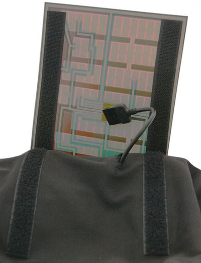 De equalizer wordt gerealiseerd door een zachte plastic opzetstuk dat met klittenband op het shirt is bevestigd. De opzetstuk wordt van stroom voorzien door een batterijbox die aan de binnenkant in een ingenaaide zak kan worden geplaatst (zie verdere afbeeldingen).