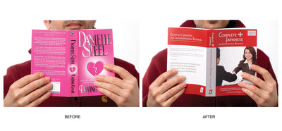 Voor een perfecte misleiding moet het boek dat je wilt laten verdwijnen iets kleiner zijn dan het Fake Cover en een vergelijkbare rugbreedte hebben. Natuurlijk kun je ook boeken met dunnere ruggen erin wikkelen, maar dan ligt het omslag niet helemaal vlak aan.