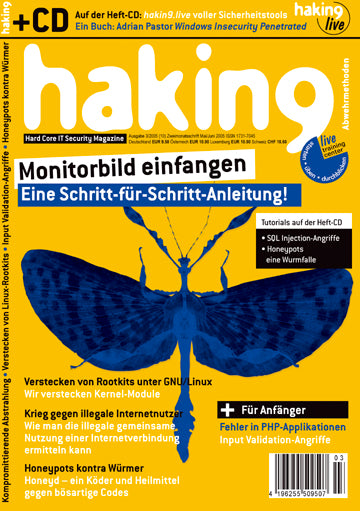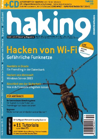 Natürlich gibt es bei uns auch eine passende Lektüre für den Computerfreak. In der Zeitschrift Hakin9 wird dem Leser Wissen über die Methoden vermittelt, mit denen Hacker Sicherheitslöcher entdecken und nutzen können. Dieses Wissen soll natürlich nicht dazu dienen, sich als Cracker zu betätigen und damit fremde Computer zu beschädigen.