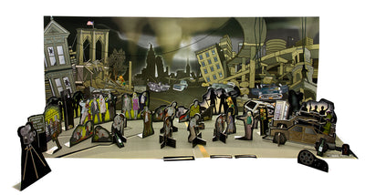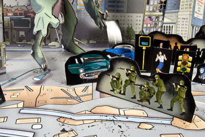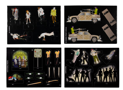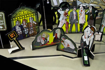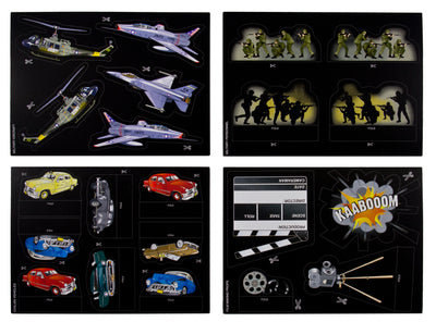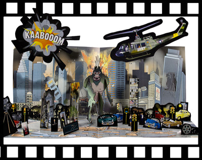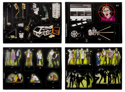 In de verschillende sets met de thema's Zombie en Monster zitten elk meer dan 50 onderdelen, die het opbouwen van een hele filmset kinderspel maken. De rekwisieten, gemaakt van stevig karton, kunnen met behulp van dunne stokjes (in de set inbegrepen) geanimeerd worden. Natuurlijk kun je ook een stop-motion film maken ;)