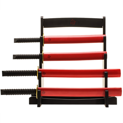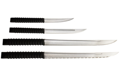 • Set van vier messen en presentatie standaard in Samurai-stijl.