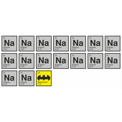 Dafür musst Du nur der Anleitung auf dem Batmanium-Becher folgen: 16 Natrium-Elementsymbole sollen mit einem Batmanium-Elementsymbol vermischt werden. Jetzt noch schnell alle Elemente vorlesen, ganz fest an eine grandiose TV-Serie über besagten Fledermaus-Helden denken und schon bist Du fertig: Na Na Na Na Na Na Na Na Na Na Na Na Na Na Na Na Batmanium!