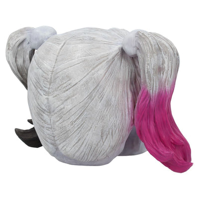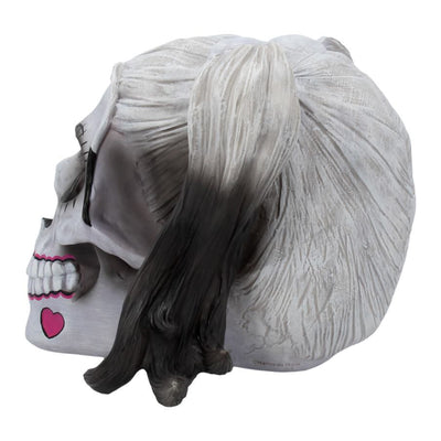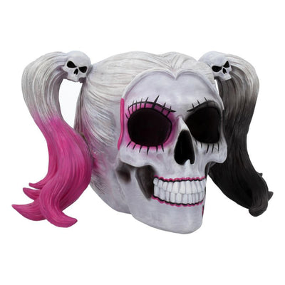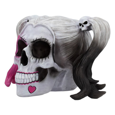 Diese morbide Raumdeko Daddy's Lil Monster Schädel wäre ganz nach ihrem Geschmack: Genau die richtige Mischung aus düster und girly. Der Deko-Schädel ist der Struktur eines menschlichen Schädels inklusive Haaren nachempfunden. Diverse schwarze, pinke und auch weiße Details erinnern an das explosive Teufelsweib an der Seite des mordlustigen Clowns. Für alle, die insgeheim immer für die Bösewichte fiebern, perfektioniert dieser Schädel das Antihelden-Sammelregal.