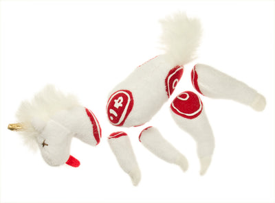 • Diese Dose enthält natürlich kein echtes Einhornfleisch, dafür aber ein zerstückeltes Plüsch-Einhorn.