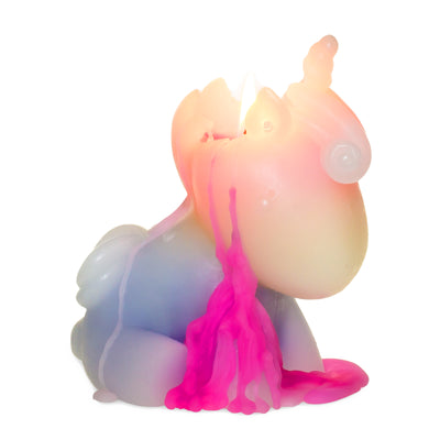 Aber kommen wir zurück zu dem Produkt: der Einhorn-Kerze. Diese Nachbildung eines niedlichen Fabelwesens aus Wachs scheint auf den ersten Blick weiß zu sein, nach dem Anzünden des Dochtes beginnt jedoch Wachs in den Farben des Regenbogens aus dem Einhorn auszutreten! Das rund 20 Stunden andauernde Spektakel wird die eine oben erwähnte Gruppe in die Lage versetzen, einem Einhorn dabei zuzusehen, wie es sich in einen Regenbogen verwandelt. Und die andere Gruppe... kann endlich mal eins dieser nervigen Glitzerviecher abfackeln. ;)