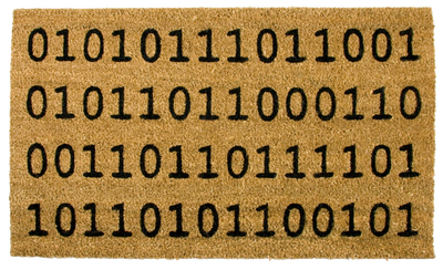 Mit dieser Fußmatte kannst Du allen Besucher schon an der Tür Deiner Wohnung zeigen, dass Du die Sprache der Computer sprichst: Während Unwissende auf der Fußmatte nur Einsen und Nullen erkennen, fühlen sich Gleichgesinnte sofort bei Dir wohl, denn die Ziffernfolge ist ein echter Binärcode und bedeutet "Welcome" ("Willkommen").