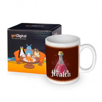 Ohne diese nützlichen Helfer würden mindestens 83 Prozent aller Rollenspielgruppen innerhalb der ersten halben Stunde die Radieschen von unten betrachten. Der Health-Becher verwandelt, wie der aufgedruckte Heiltrank zeigt, jedes Getränk in einen erfrischenden Trunk, der Lebenspunkte wiederherstellt und mit gaaanz viel Vorstellungskraft sogar Deine Wunden schneller heilen lässt. Dafür müsstest Du aber vorher noch kurz auf Placebo-Magier umskillen. ;)