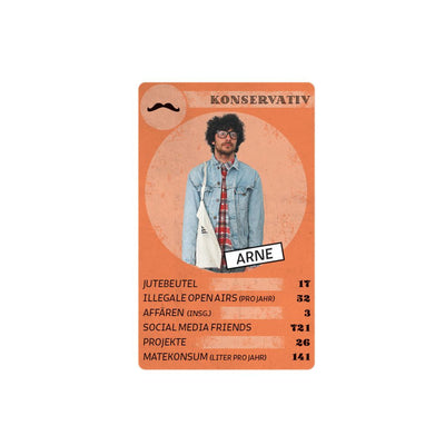 Jutebeutel, Röhrenjeans und Nerdbrille zeichnen ihn ebenso aus wie reger Social-Media-Konsum und seine übertrieben wirkende Individualität. Finde heraus, welcher fesche Hipster dir am wenigsten sympathisch ist oder welchen Typus du auf der letzten Party beobachten konntest: Nerd-artige, Konsumenten, Party-Stampfer oder doch eher verstrahlte Träumer? Fin, Nele, Jan-Ole und Gunnar lassen im Hipsterquartett die Fetzen ihrer Secondhand-Kleidung fliegen.
