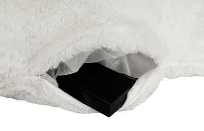 Die Elektronik des LED Kissens und die energiesparenden LEDs befinden sich in der Kissenfüllung, das Batteriepack liegt noch einmal zusätzlich in einer kleinen gepolsterten Tasche, damit auch wirklich nichts stört oder drückt.
