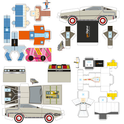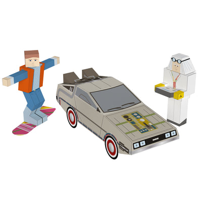 Zur Vorbereitung auf den Tag, an dem Marty im Jahr 2015 ankommt, kannst Du Dir Dein eigenes OCT 21 2015 Papercraft Set basteln. Alle wichtigen Bestandteile enthält der Bastelbogen, Du brauchst nur noch Schere und Klebstoff. Der Bogen enthält Marty, den Doc mit Fernbedienung für die Zeitmaschine, den DeLorean und natürlich das Hoverboard.