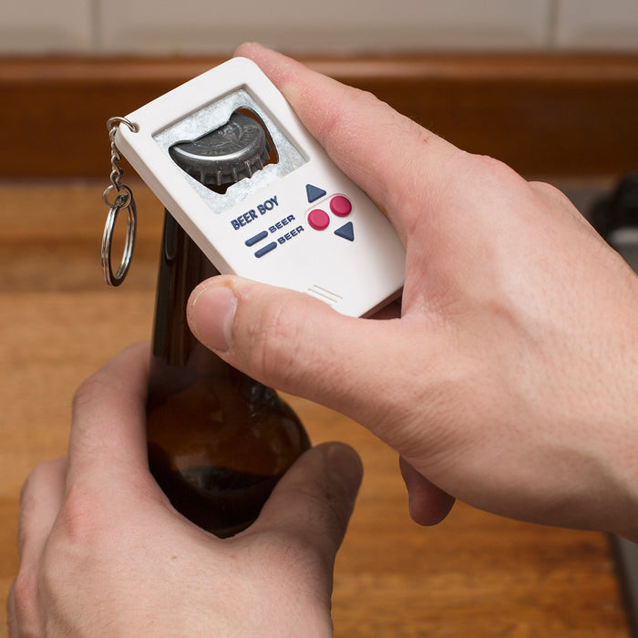 Das nostalgische Design des Beer Boy Flaschenöffner ist einer bekannten Retro-Konsole nachempfunden. Statt eines Bildschirms enthält er aber ein Metallelement zum Öffnen von Flaschen mit Kronkorkenverschluss. So kannst du damit vielleicht keine Games, aber Trinkspiele spielen. ;)