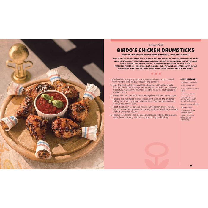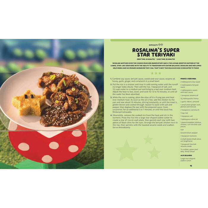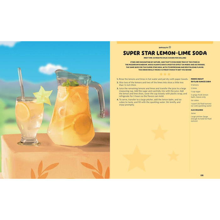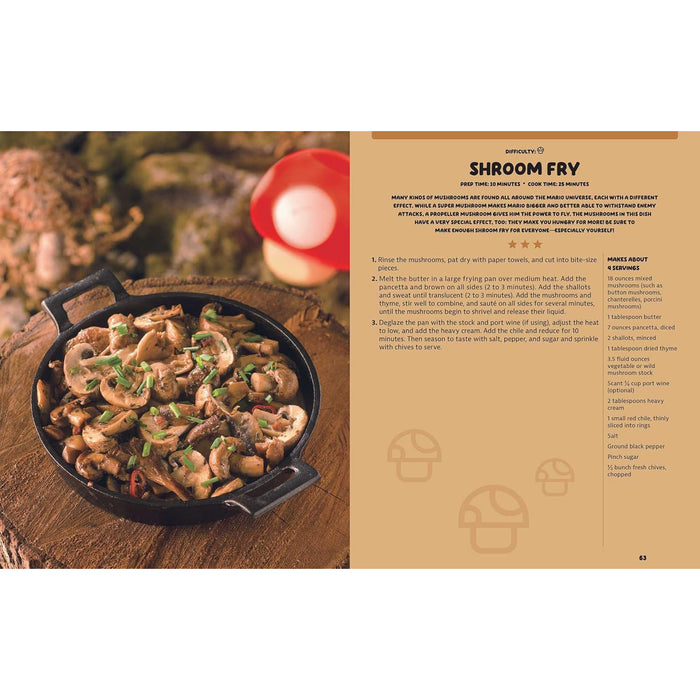 Von „Super Mushrooms“ über „Magma Burgers“ bis zum legendären „Mistake“ – die Gerichte klingen nicht nur nach Videospiel-Abenteuer, sie lassen sich mit alltäglichen Zutaten und einfachen Anleitungen auch ganz real umsetzen. Jede Doppelseite bringt nicht nur Farbe auf den Tisch, sondern auch Spaß in den Kochprozess: Vollfarbige Abbildungen, praktische Tipps und charmante Fakten rund um Mario, Luigi, Peach und Co. machen das Buch zur perfekten Mischung aus Kochhilfe und Nerd-Lektüre.