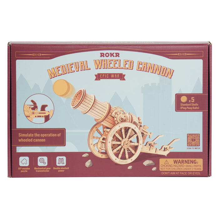 • Bausatz für eine Holz-Kanone mit Rädern aus 158 Teilen