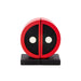 • Buchstützen, die dem Deadpool-Logo nachempfunden sind
