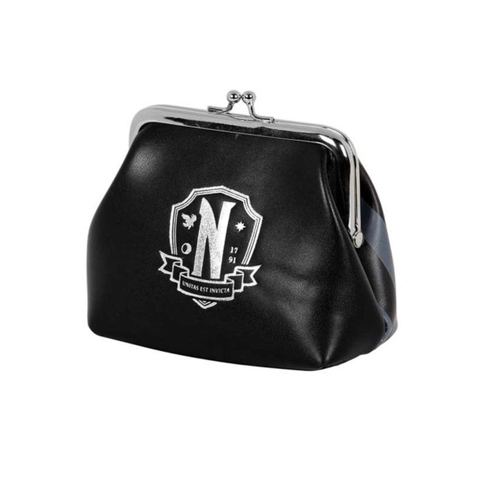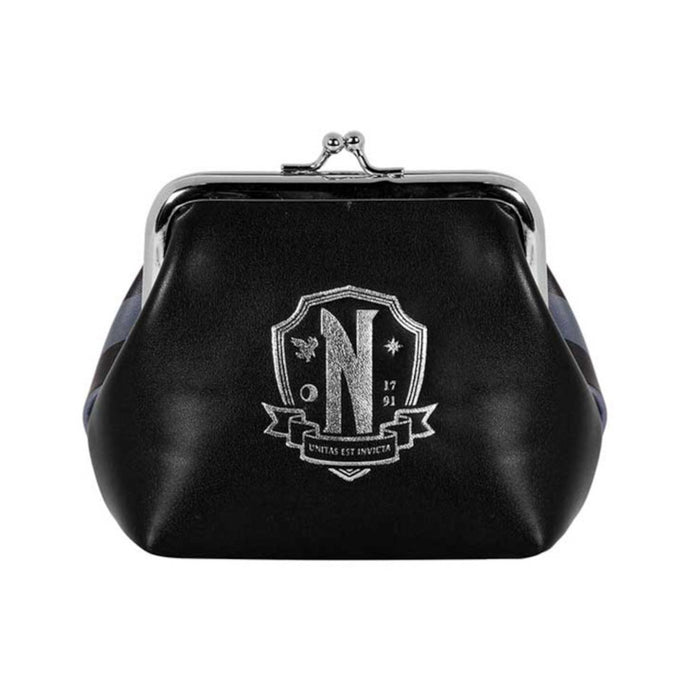 • Tiefschwarze Geldbörse mit dem Logo der Nevermore Academy aus der Serie “Wednesday”